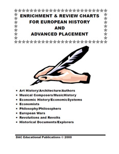 ENRICHMENT AND REVIEW CHARTS FOR EUROPEAN HISTORY AND ADVANCED PLACEMENT* $14.99 Order Code: DAC169 ISBN: 9781560047728 Reproducible masters Downloadable version Quantity Add to cart Quote This product is already in your quote View Your Quote